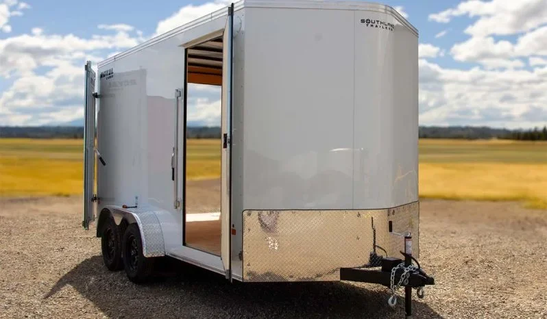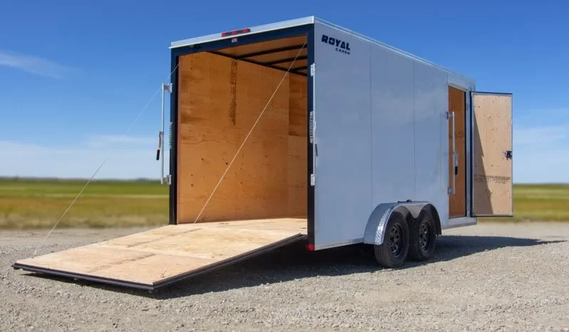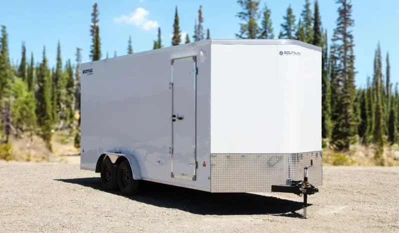 Enclosed Cargo Trailer 7.5’W x 16’L with V-Nose 86” Wall Height Rear Barn or Ramp Door 7,700 lbs. or Payload 5,389 lbs.